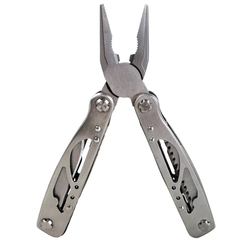 16 Integrated Functions: Includes high-leverage needle-nose and regular pliers, wire cutters, a serrated blade, regular blade, scissors, and a variety of screwdrivers and hex tools.